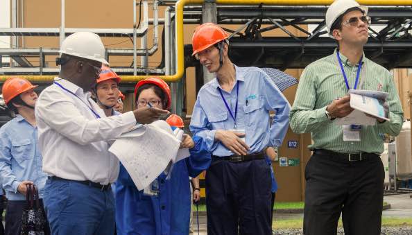 7月5日上午,OPCW視察組和國家代表、省市陪同人員在聽取核查前情況介紹后,共同前往公司生產(chǎn)區(qū)域進(jìn)行了現(xiàn)場核查。視察組一行在察看企業(yè)總平面布置之后,分別對生產(chǎn)裝置、工藝流程等作了詳細(xì)了解,核實(shí)了企業(yè)生產(chǎn)經(jīng)營中的相關(guān)記錄、原始臺(tái)賬、報(bào)表等,公司陪同人員客觀、專業(yè)的回答了核查組提出的各類問題。